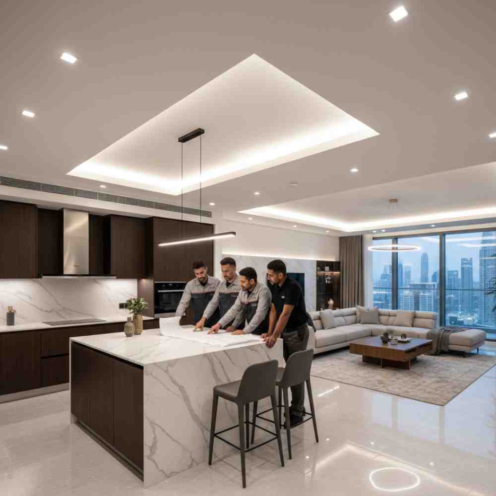 - Gypsum Ceiling Works – Custom-designed gypsum ceilings for residential and commercial interiors.